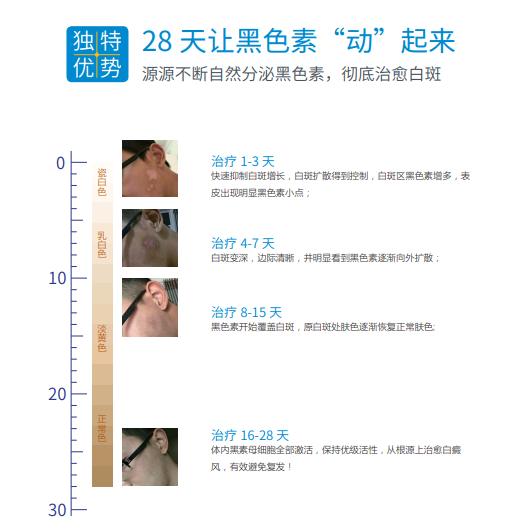北京中科建都医院最新技术“黑素母细胞激活再生体系”28天让黑色素动起来,从患者患病根源出发,有效控制白斑生长,让黑色素活动起来,从下面案例中可以看到黑色素细胞逐渐增多,一个疗程后即可看到效果,在配合上医生的专业护理和患者家人的支持,很快就可以帮助患者走向健康。