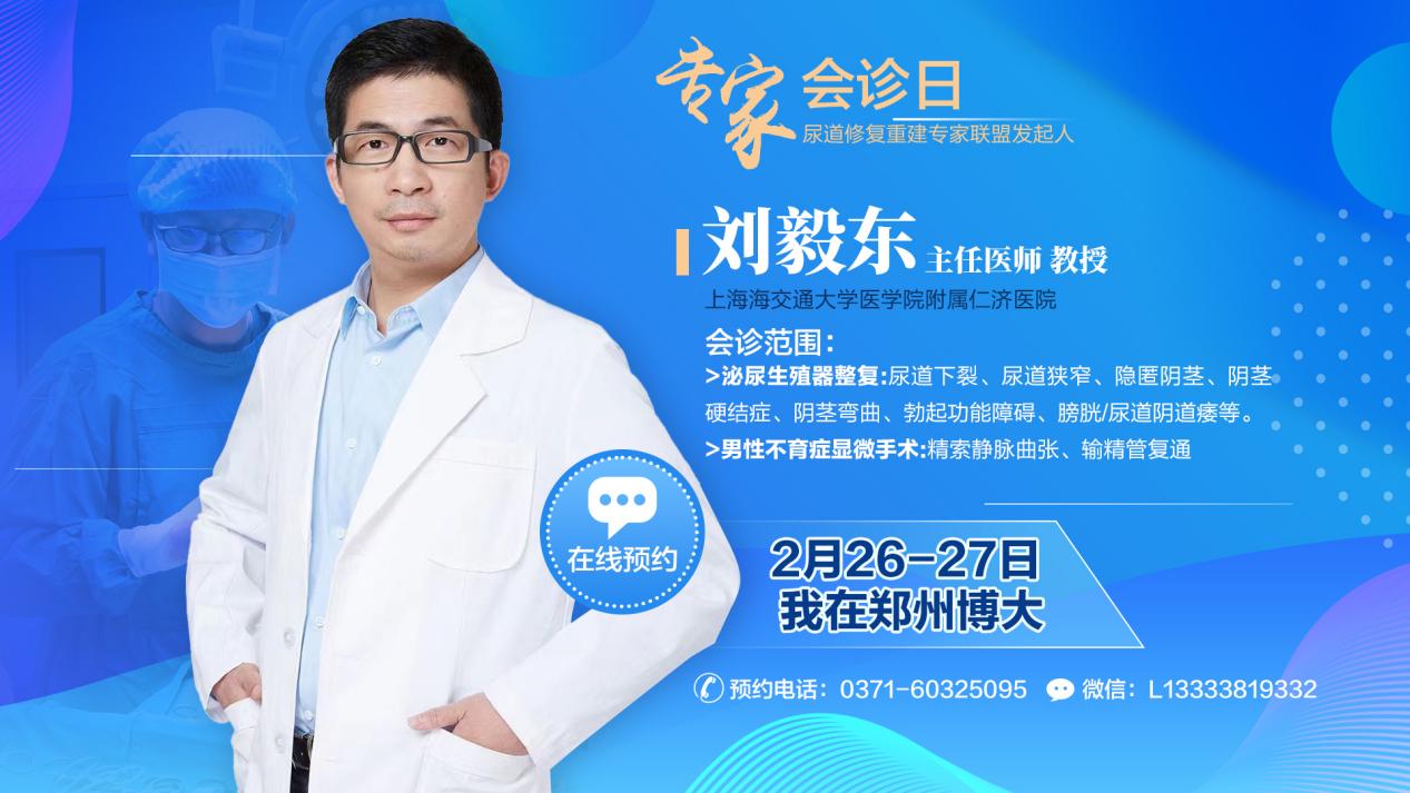 郑州博大泌尿外科医院2023年2月26日-27日专家会诊,上海交通大学医学院附属仁济医院专家刘毅东教授亲诊。