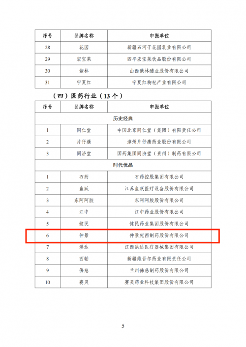 4月11日,工业和信息化部正式公布首批中国消费名品名单,包括企业品牌93个,其中医药行业13家,“仲景”品牌入选医药行业时代优品。这是“仲景”品牌被认定为“中华老字号”之后,又一国家级品牌荣誉。