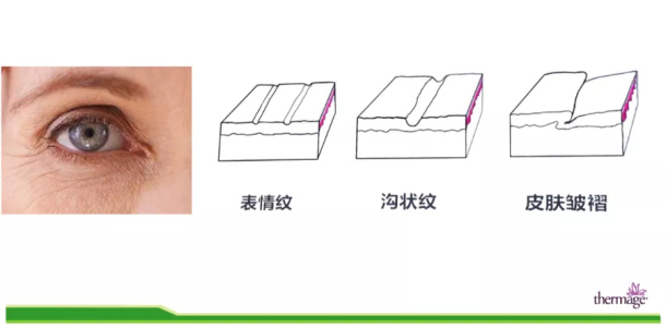 眼睑及眶周出现的皱纹主要分为静态纹、表情纹及重力性皱纹。对于基本概念我们不做赘述,热玛吉眼部治疗对于静态纹(眶周细纹、鱼尾纹)、重力性皱纹具有显著治疗效果,表情纹需进行肉毒素注射解决。