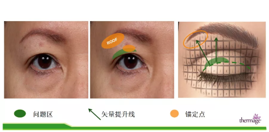 对于轻中度眉下垂,我们使用热玛吉面部治疗头在前额、眶外侧区域进行覆盖可达到固定和牵引的效果,改善眉下垂问题,重度眉下垂者建议选择提眉术进行纠正。