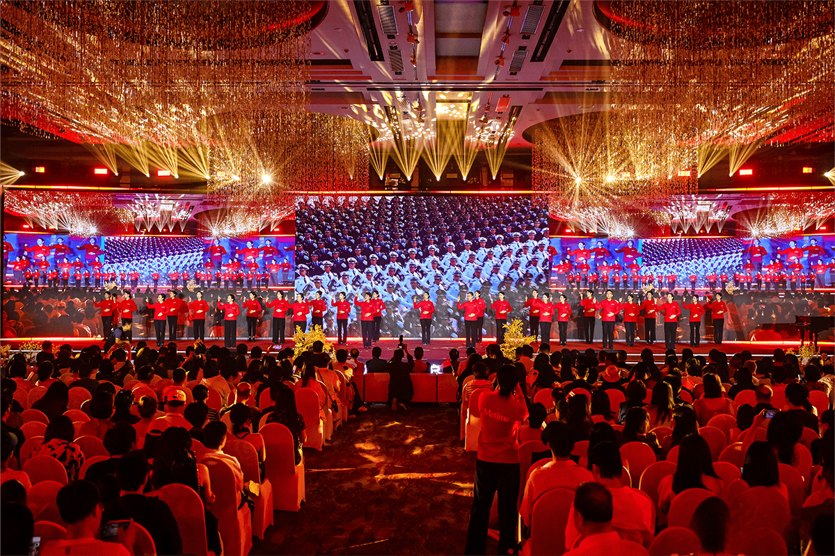 庆典以北京美天医护团队深情演绎的手语舞《国家》震撼启幕。当白衣天使们以肢体语言勾勒 “一玉口中国,一瓦顶成家” 的画面时,引发了全场的强烈共鸣,掌声持续不断。这场表演不仅传递了 “仁心守护健康美” 的职业信仰,更将医美使命与家国情怀深度融合,彰显北京美天团队 “以有限生命,追求无限极致之美” 的初心。